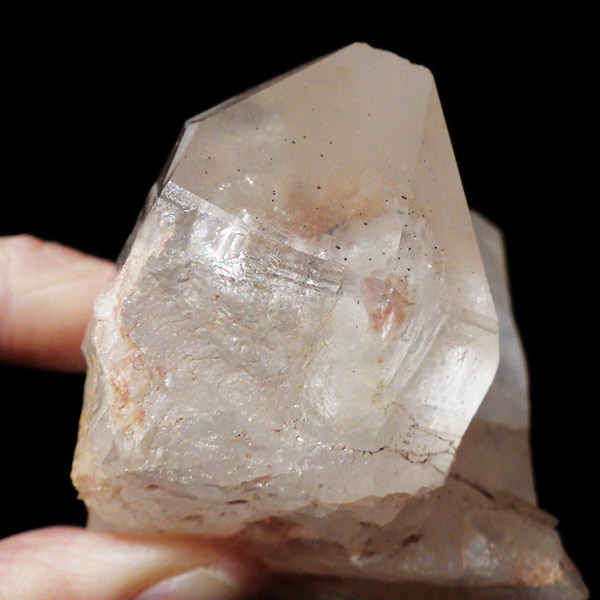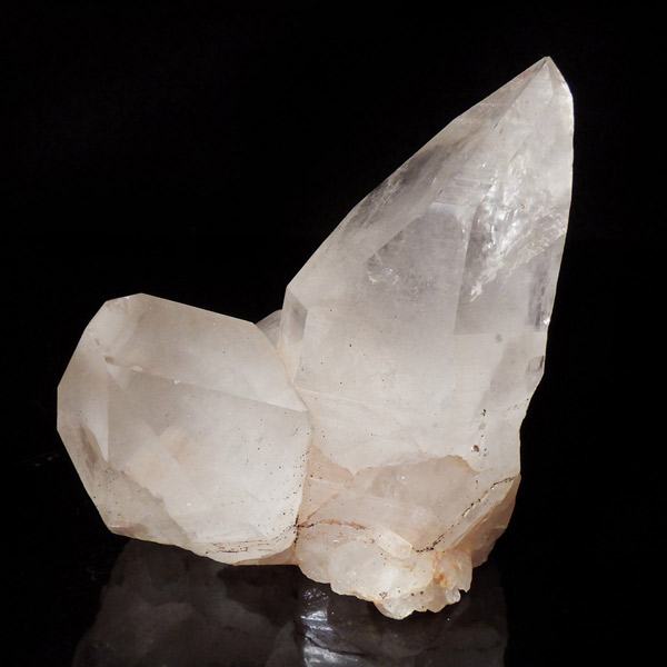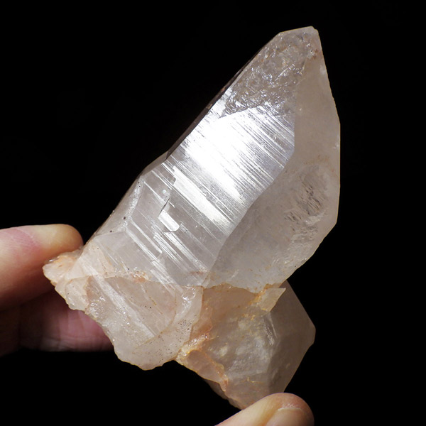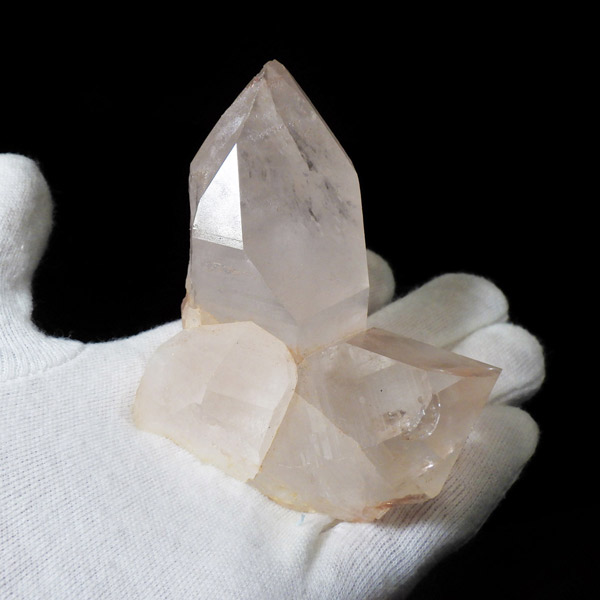 インド・ヒマラヤ山脈にあるマニカラン産の水晶クラスターです。この地で採掘される水晶には表面がピンク、又はグリーンをしたものがよく見られます。ピンク色の水晶といえばローズクォーツが有名ですが、それとは別で土壌に含まれる赤褐色をした酸化鉄により表面や母岩部がピンク色になっています。ほんのりと淡いピンク色や濃いピンク色、オレンジがかったピンク色などそれぞれ微妙に色合いも違います。グリーンはクローライトを内包したものになります。
