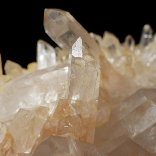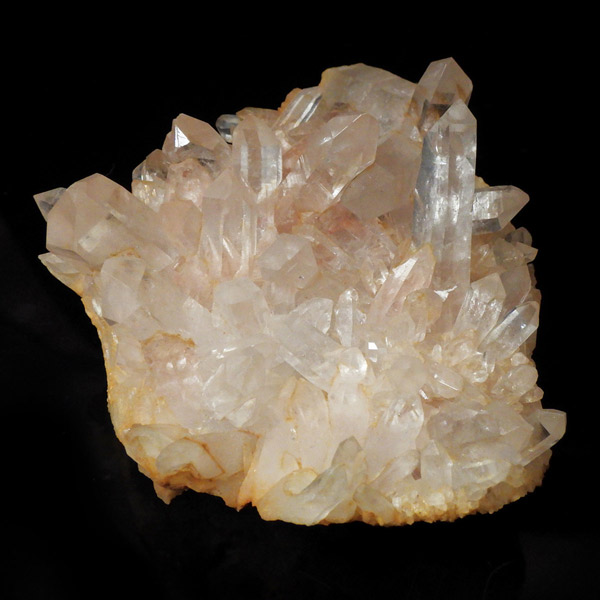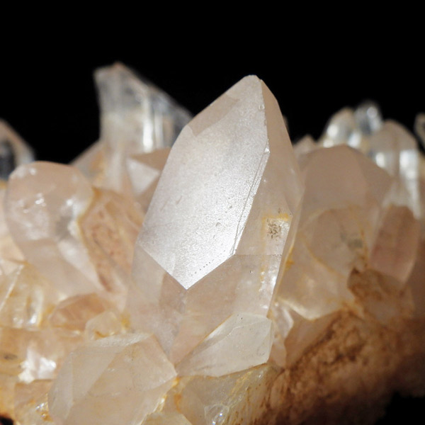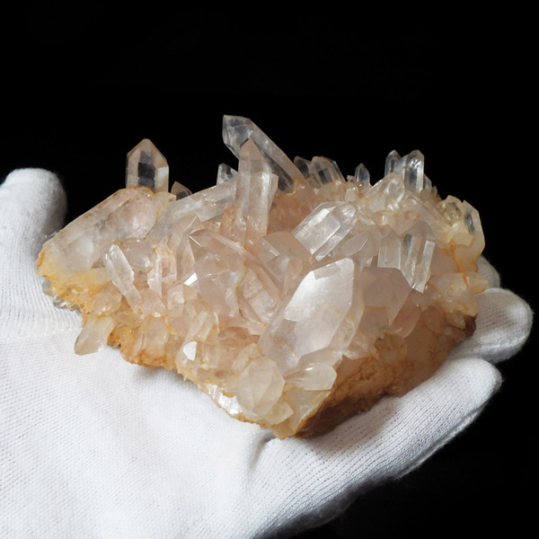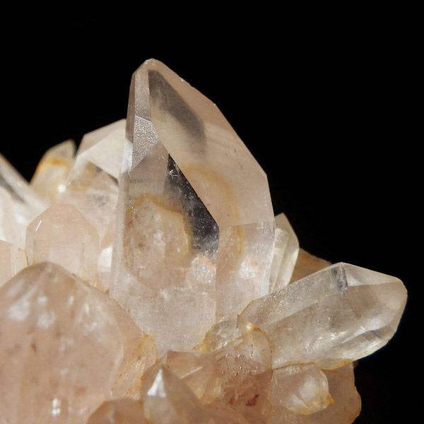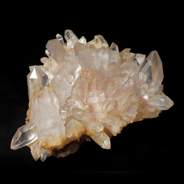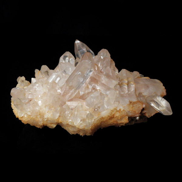 インド・ヒマラヤ山脈にあるマニカラン産の水晶クラスターです。この地で採掘される水晶には表面がピンク、又はグリーンをしたものがよく見られます。ピンク色の水晶といえばローズクォーツが有名ですが、それとは別で土壌に含まれる赤褐色をした酸化鉄により表面や母岩部がピンク色になっています。ほんのりと淡いピンク色や濃いピンク色、オレンジがかったピンク色などそれぞれ微妙に色合いも違います。グリーンはクローライトを内包したものになります。