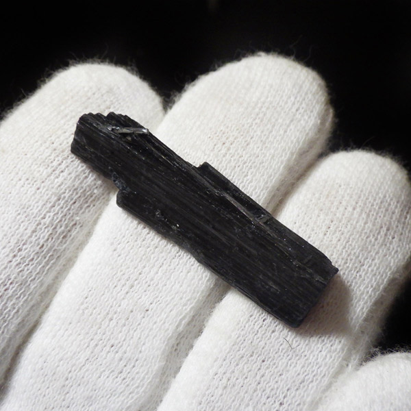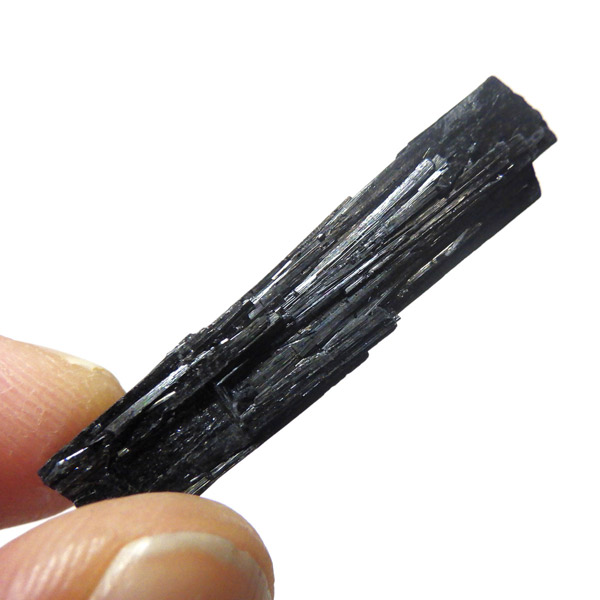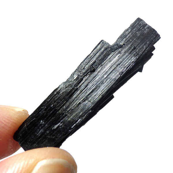 ブラジル産のブラックトルマリン原石です。トルマリンの結晶は柱状で縦に伸びる条線が特徴的です。断面は六角形ですが、三面のみ大きく発達していて三角形に近いものも多く見られます。結晶の表面はとてもツヤツヤと美しい光沢を放ち魅力的です。