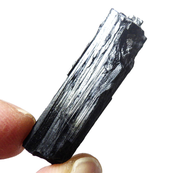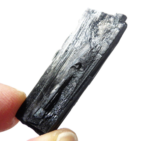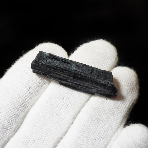 ブラジル産のブラックトルマリン原石です。トルマリンの結晶は柱状で縦に伸びる条線が特徴的です。断面は六角形ですが、三面のみ大きく発達していて三角形に近いものも多く見られます。結晶の表面はとてもツヤツヤと美しい光沢を放ち魅力的です。