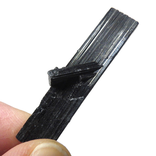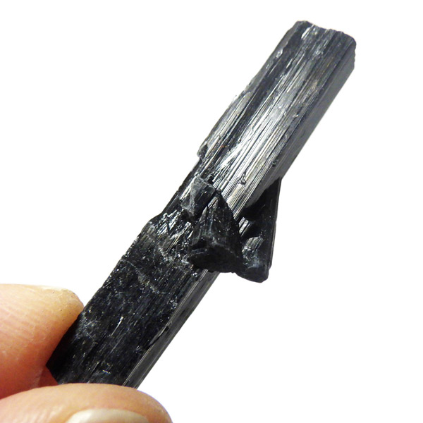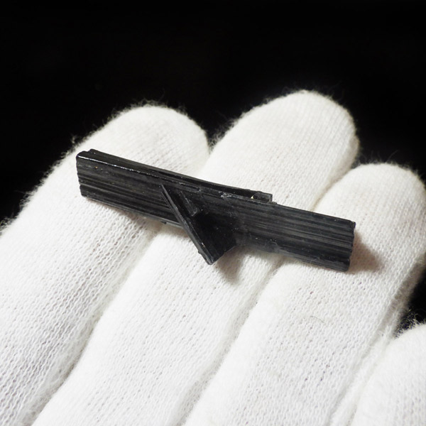 ブラジル産のブラックトルマリン原石です。トルマリンの結晶は柱状で縦に伸びる条線が特徴的です。断面は六角形ですが、三面のみ大きく発達していて三角形に近いものも多く見られます。結晶の表面はとてもツヤツヤと美しい光沢を放ち魅力的です。