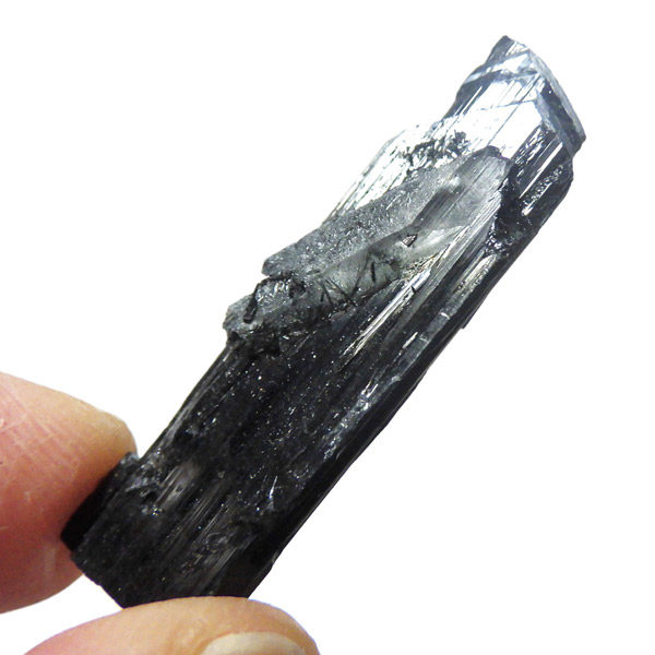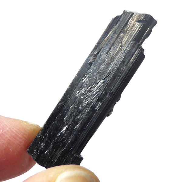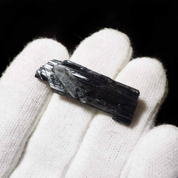 ブラジル産のブラックトルマリン原石です。トルマリンの結晶は柱状で縦に伸びる条線が特徴的です。断面は六角形ですが、三面のみ大きく発達していて三角形に近いものも多く見られます。結晶の表面はとてもツヤツヤと美しい光沢を放ち魅力的です。