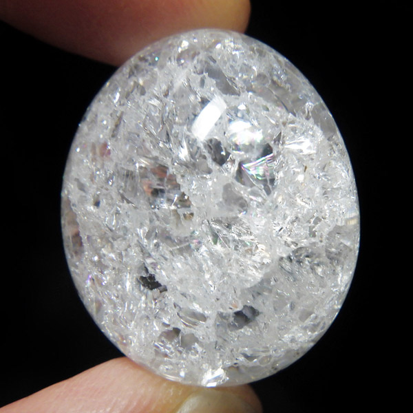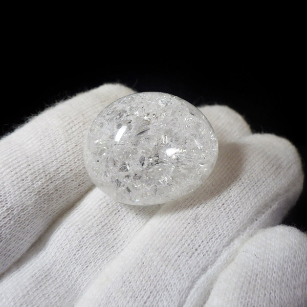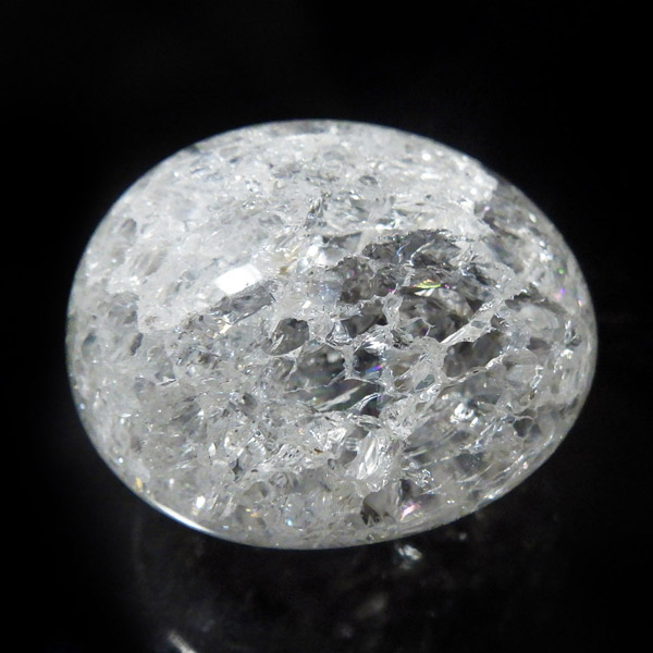 ブラジル産のクラッククォーツ、タンブルです。天然の水晶に人工的にクラック処理を施して作っています。 通常のクリアなクォーツとは異なり、ひび割れ部分が光を乱反射することで、キラッキラッした煌めきと虹色の輝きを見せてくれます。濁りの少ない透明度の良い水晶をしているので、美しさが際立ちます。お部屋に飾ったり、お守りとして持ち運んだり、良い気を運んでくれそうです。