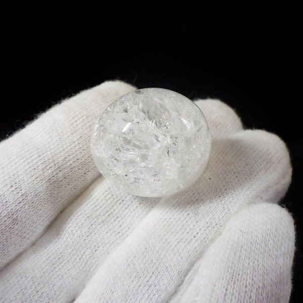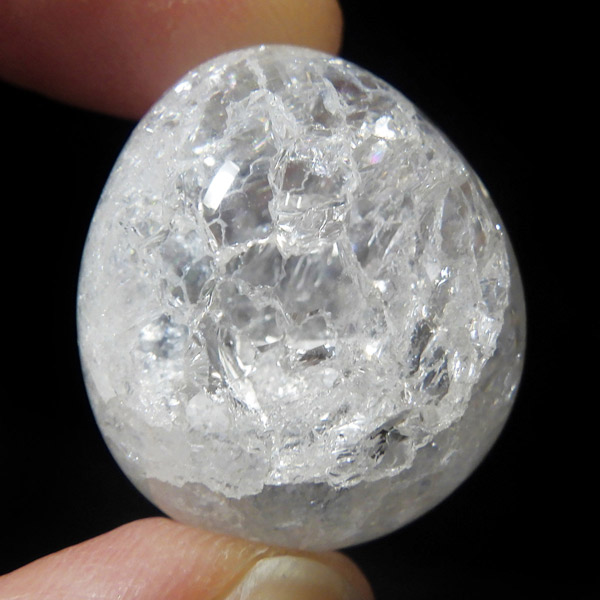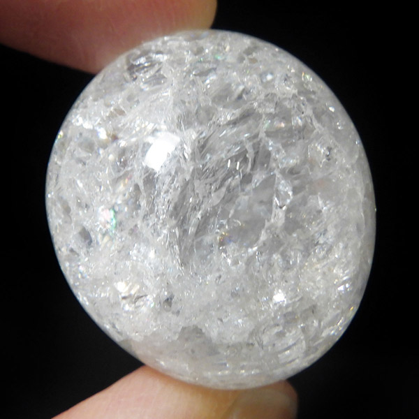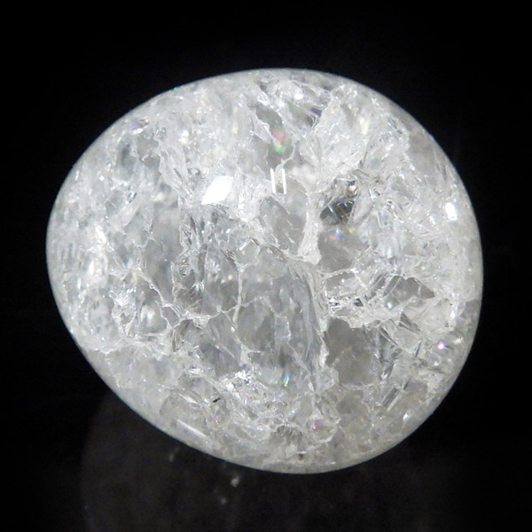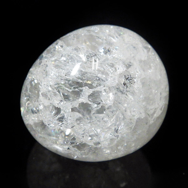 ブラジル産のクラッククォーツ、タンブルです。天然の水晶に人工的にクラック処理を施して作っています。 通常のクリアなクォーツとは異なり、ひび割れ部分が光を乱反射することで、キラッキラッした煌めきと虹色の輝きを見せてくれます。濁りの少ない透明度の良い水晶をしているので、美しさが際立ちます。お部屋に飾ったり、お守りとして持ち運んだり、良い気を運んでくれそうです。