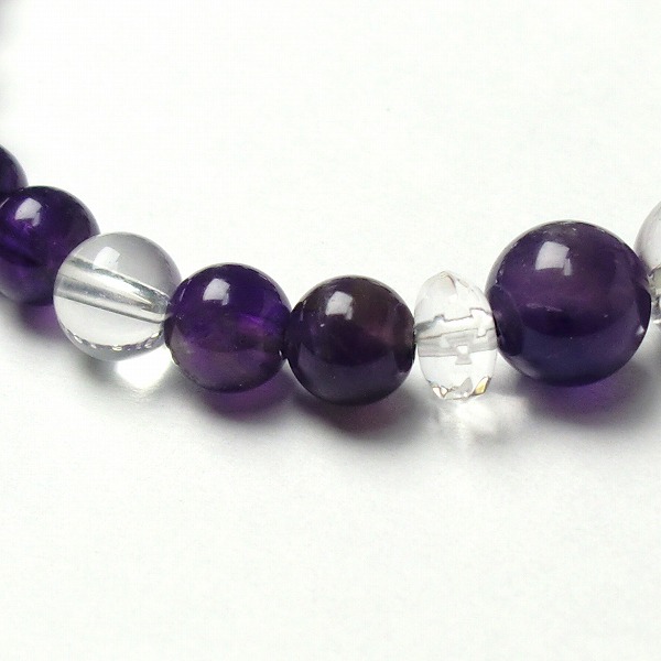 内周:約16cm アメジスト8mm×3玉、水晶8mm×3玉、アメジスト6mm×12玉、水晶6mm×3玉、水晶BC6玉