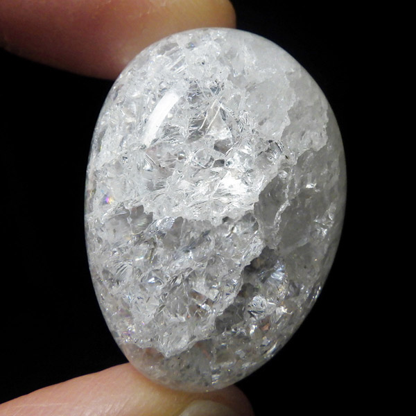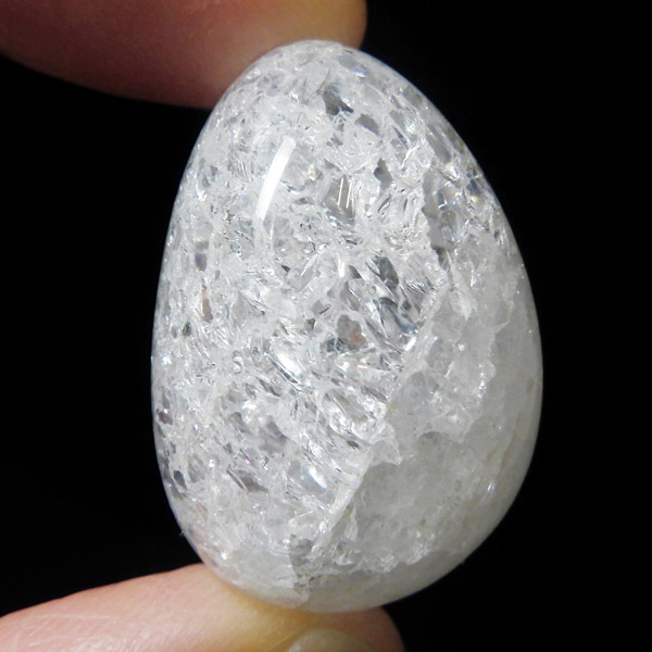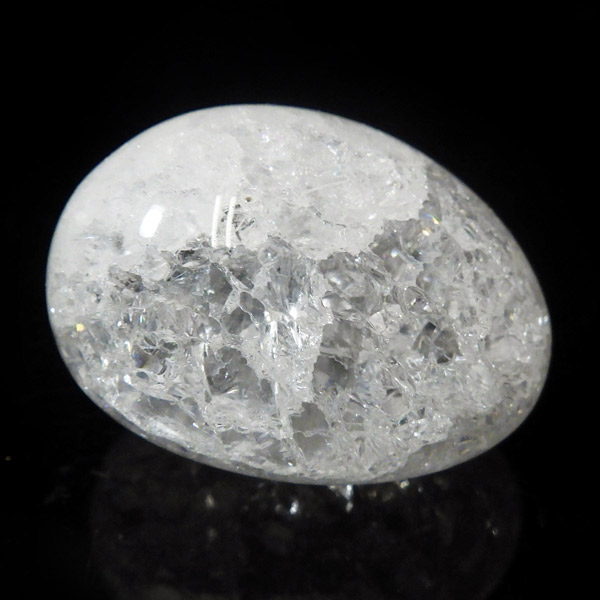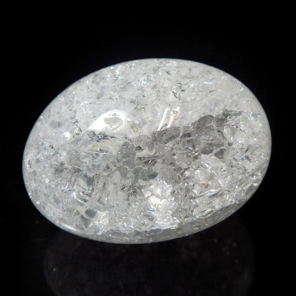 ブラジル産のクラッククォーツ、タンブルです。天然の水晶に人工的にクラック処理を施して作っています。 通常のクリアなクォーツとは異なり、ひび割れ部分が光を乱反射することで、キラッキラッした煌めきと虹色の輝きを見せてくれます。濁りの少ない透明度の良い水晶をしているので、美しさが際立ちます。お部屋に飾ったり、お守りとして持ち運んだり、良い気を運んでくれそうです。