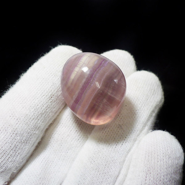 マルチカラーフローライト、タンブルです。 大変透明度が高く、いろいろなカラーの色彩が見られます。蛍石の名前の通り、様々な角度からその美しさを楽しむことができます。光にかざして透かすと、カラーが複雑に入り乱れており、そのグラデーションが大変きれいです。