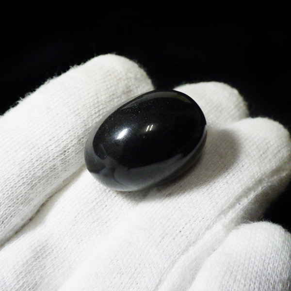 メキシコ産のオブシディアン、タンブルです。オブシディアンは和名で黒曜石。火山の噴火によって生じる天然のガラスで、急速に冷却された溶岩が結晶化せずに固まったものです。古代から世界各地で使われてきた道具のひとつで矢じりやナイフを作ったり、狩猟や戦闘、儀式など身近に使われていた天然石です。タンブル加工されていると、持ちやすく手触りも滑らかで、お守りとして持ち歩くのにもぴったりです。