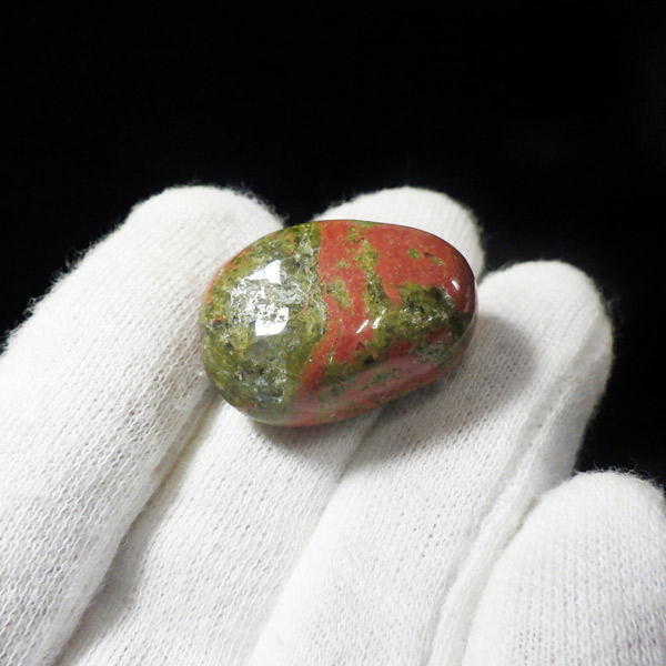 複数の石で構成されるアメリカ・ノースカロライナ州産、ユナカイトのタンブルです。