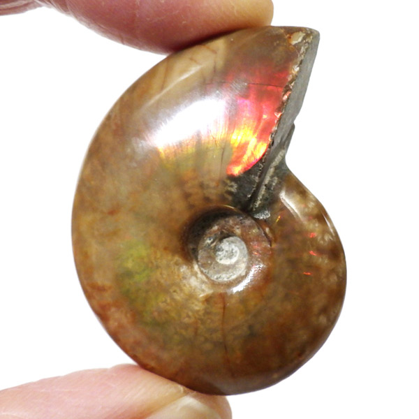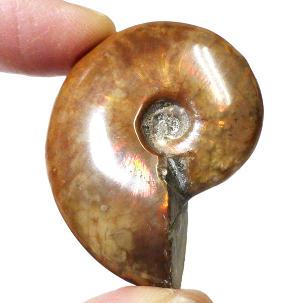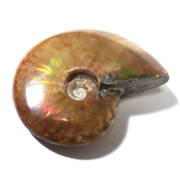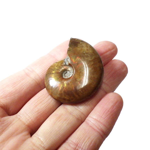 マダガスカル産、アンモナイトの化石です。虹色の遊色もしっかりと出ています。実際に手に取って自然の神秘を感じてほしい一点です。 アンモナイトはアンモン貝(オウムガイの先祖)の化石です。およそ7000年前に生息していたアンモン貝。「アンモナイト」という名前は、18世紀頃のエジプトで、神アンモンに捧げる羊の角の代わりとして使用されたことから名付けられました。 アンモン貝は、劣化しにくい殻という特徴のため、化石として美しい状態で出土されることが多く有名です。