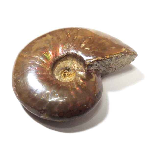 マダガスカル産、アンモナイトの化石です。虹色の遊色もしっかりと出ています。実際に手に取って自然の神秘を感じてほしい一点です。