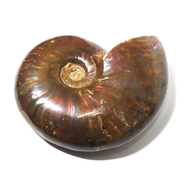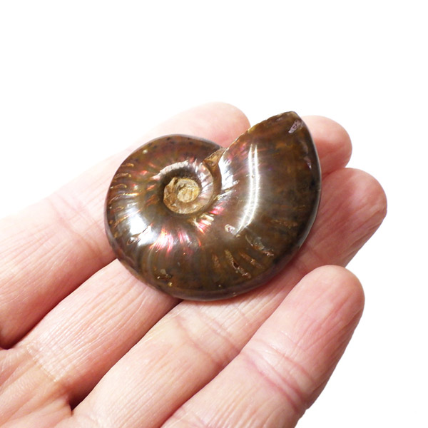 マダガスカル産、アンモナイトの化石です。虹色の遊色もしっかりと出ています。実際に手に取って自然の神秘を感じてほしい一点です。