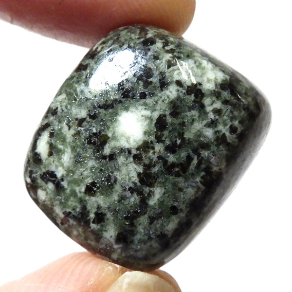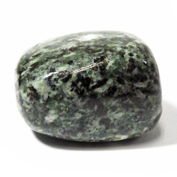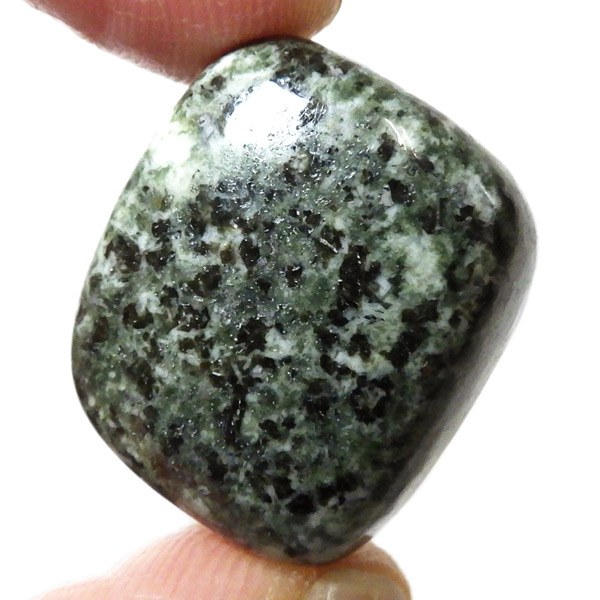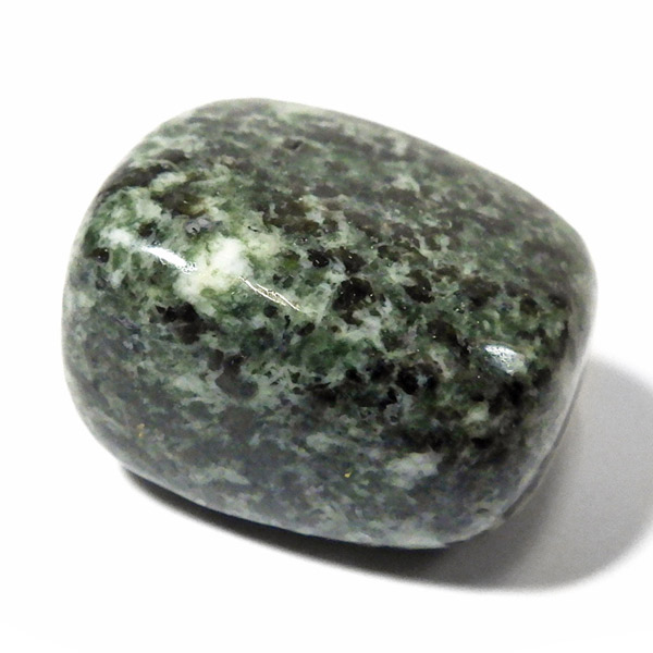 イギリス産のプレセリブルーストーン、タンブルです。 プレセリブルーストーンは「ストーンヘンジの石」として知られており、イギリスにある世界遺産「ストーンヘンジ」の建造に使われたとされるパワーストーンです。 色合いは灰色や黒みがかった深い緑色で、ドレライトという鉱物の一種に分類されます。この石は、イギリス・ウェールズのペンブロークシャー地方にあるプレセリ丘陵でのみ採掘される、非常に希少な天然石です。世界でこの地域以外では採れず、この場所で採れたドレライトのみが「プレセリブルーストーン」と呼ばれます。現在、プレセリブルーストーンの採掘はイギリス政府により制限されており、正規に採掘・販売を許可されているのは Preseli Bluestone Limited. という企業のみです。この石は学術的価値が高く、古代文明へのロマンと神秘性に満ちた存在として、多くの人々を魅了しています。