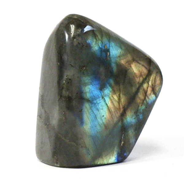 マダガスカル産のラブラドライト磨き原石です。見る角度によってオーロラのような光彩を放つ、幻想的な輝きが魅力のラブラドライト。 グレーを基調とした落ち着いた色合いの中から、鮮やかなブルーやグリーンの輝きが浮かび上がる姿は、「アゲハ蝶の羽」にも例えられる美しさです。 こちらは、マダガスカル産の高品質なラブラドライトを丁寧に磨き上げた原石。自然の神秘を感じられる一品です。