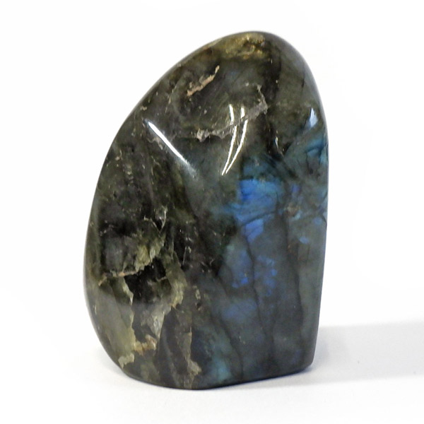 マダガスカル産のラブラドライト磨き原石です。見る角度によってオーロラのような光彩を放つ、幻想的な輝きが魅力のラブラドライト。 グレーを基調とした落ち着いた色合いの中から、鮮やかなブルーやグリーンの輝きが浮かび上がる姿は、「アゲハ蝶の羽」にも例えられる美しさです。 こちらは、マダガスカル産の高品質なラブラドライトを丁寧に磨き上げた原石。自然の神秘を感じられる一品です。