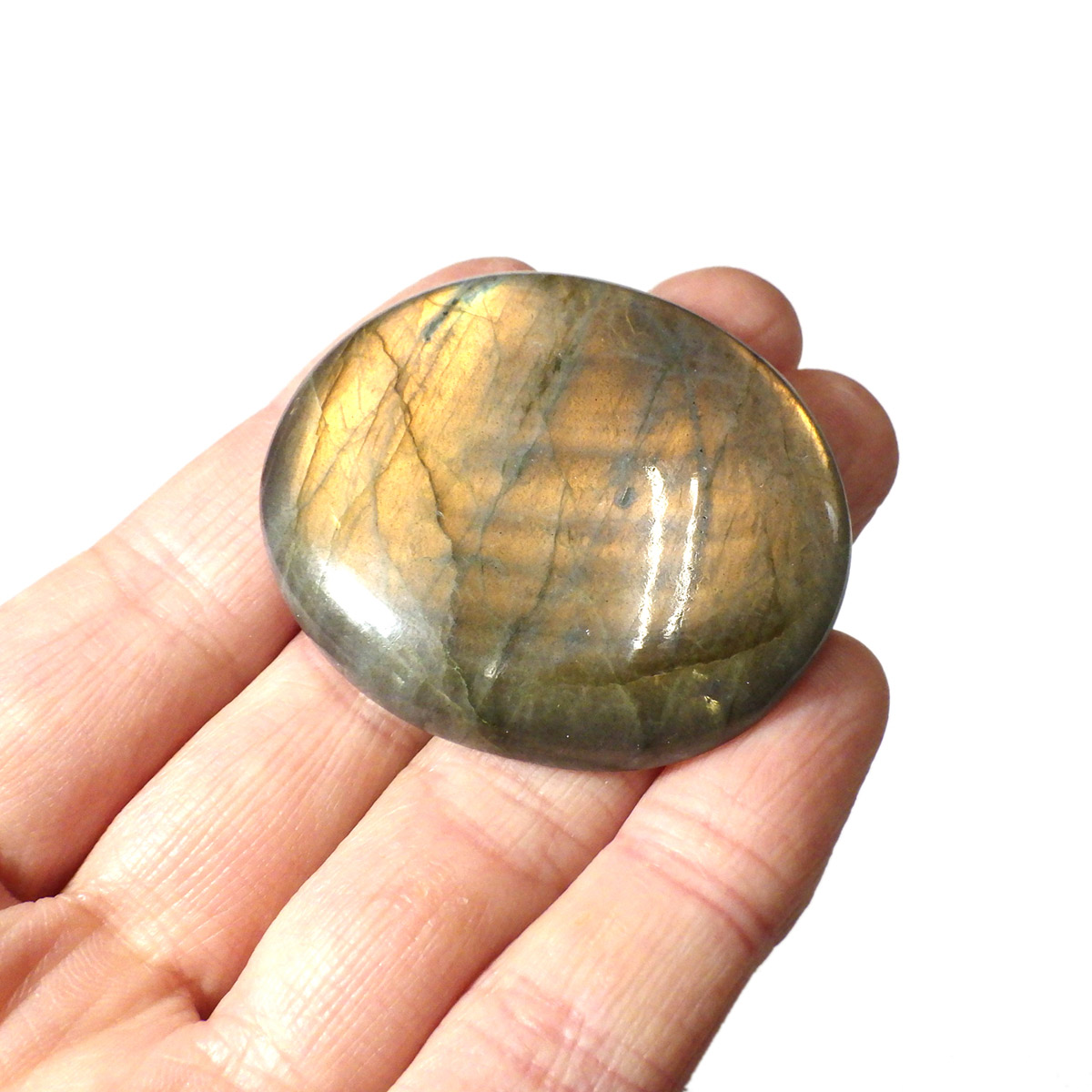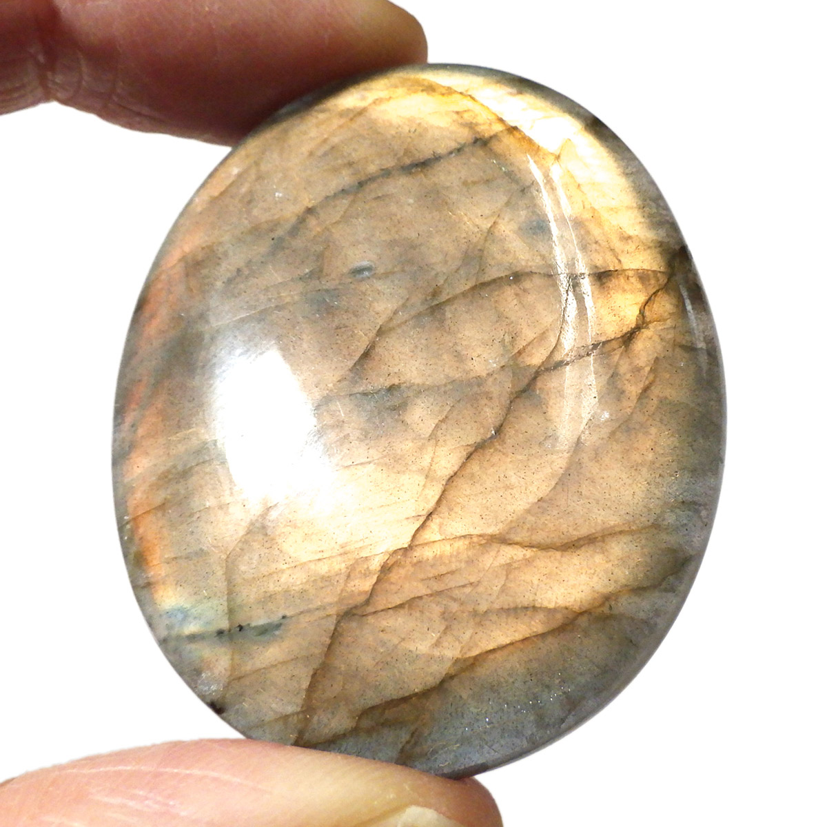 ラブラドライトの美しい天然石ルースです。 ラブラドライトは見る角度によってオーロラのような色彩を変える美しい光を持つのが特徴です。 石自体はグレーなどの地味めな色合いをしていますが、そこに鮮やかな輝きが浮かび上がるところから「アゲハ蝶の羽」に例えられる事もある美しい石です。 ラブラドライトは、月・太陽を象徴するといわれています。根気強い実行力を養い、信念を貫けるよう導く力があるとされます。そして、直感力・洞察力・創造性を高めてくれるでしょう。自信を失いかけた時に、生まれた意味・生きる意味を気づかせるサポートをしてくれ、生きる力を引き出してくれるといわれています。