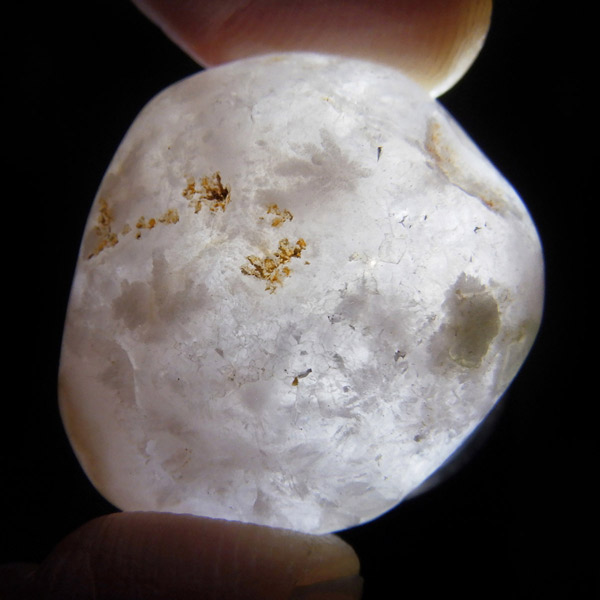 淡いピンクからオレンジ色の部分はカルセドニーで、近年流通し始めた新しい石種ですが、通常のめのうと異なり染色されていない天然の色味を持つものは非常に希少です。