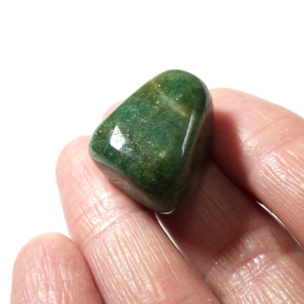 タンザニア産のフックサイト、タンブルです。フックサイト、発音によりフクサイト、またはクロムマイカと呼ばれております。マイカ(雲母)グループの中のモスコバイト(白雲母)の変種で緑色になったものがフックサイトです。和名はクロム白雲母でクロムにより緑色に発色しております。