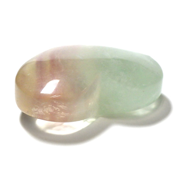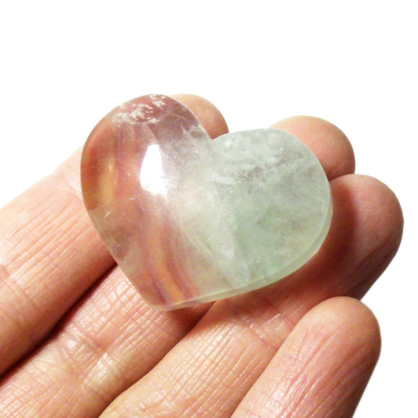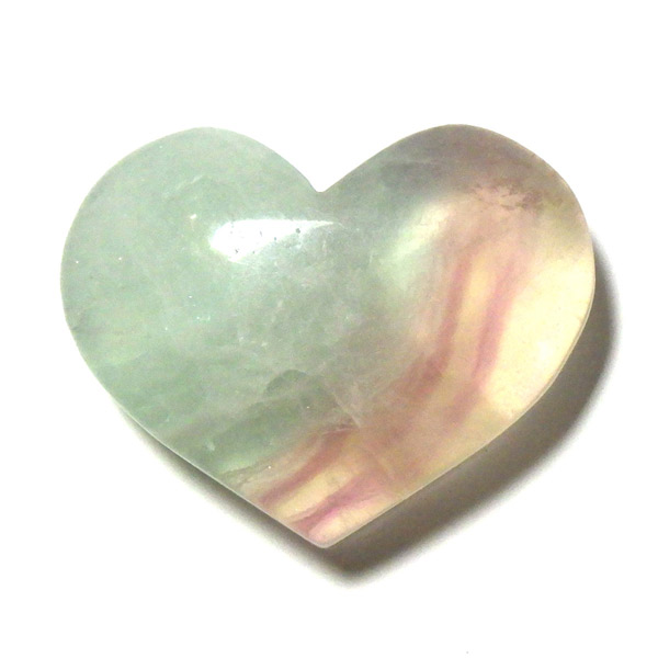 チャイナ産のフローライトで出来たハート形の置物です。 透明度が非常に高く、ひとつの石の中に多彩な色彩が美しく広がっています。まさに蛍石(フローライト)という名の通り、光の角度によって異なる表情を見せてくれるのが魅力です。 光にかざして透かすと、ピンクやグリーン、ブルーなどの色のグラデーションが複雑に入り混じり、幻想的な美しさを楽しめます。ハート形の優しいフォルムと相まって、インテリアとしてもかわいらしく、飾っていただけやすいかと思います。