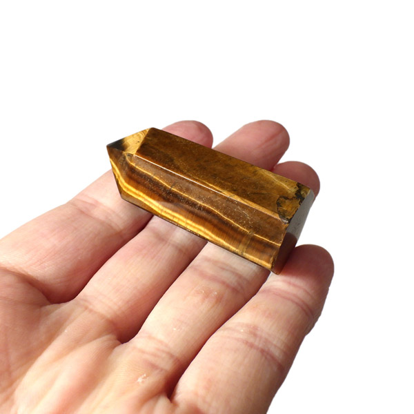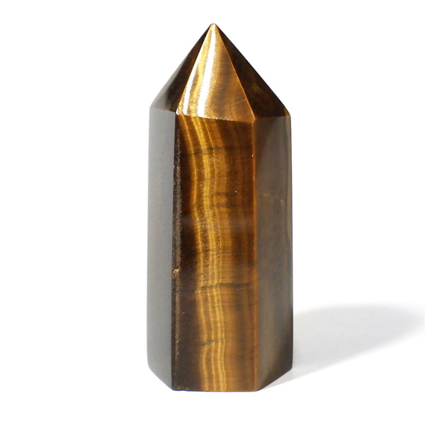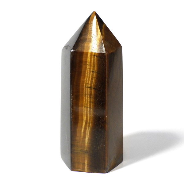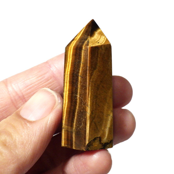 南アフリカ産タイガーアイのポリッシュポイントです。 力強い金褐色の縞模様が光を受けて輝き、見る角度によって表情を変える美しい一本です。シャープな輝きはまるで虎の眼差しのように、鋭い洞察力と集中力を象徴します。 タイガーアイは、仕事運・金運を高める石としても人気があり、目標達成や決断力のサポートに最適。持ち主に自信と行動力を与え、チャンスをしっかりとつかむ後押しをしてくれるといわれています。オフィスやデスクに飾れば、空間を引き締め、前向きなエネルギーをもたらしてくれるでしょう。