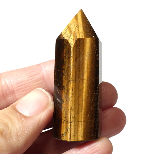 力強い金褐色の縞模様が光を受けて輝き、見る角度によって表情を変える美しい一本です。シャープな輝きはまるで虎の眼差しのように、鋭い洞察力と集中力を象徴します。