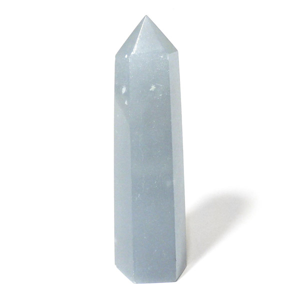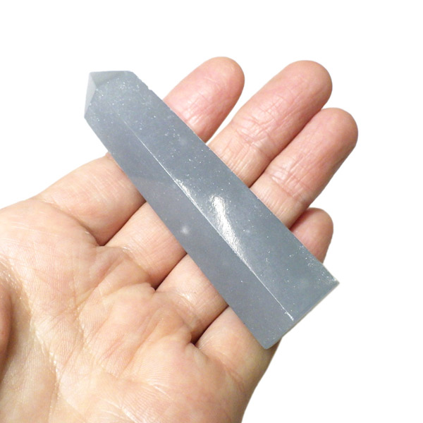 やわらかな空色が印象的なエンジェライト。ブルーの中にホワイトの天使の羽が内包されたものを厳選しております。空の中に漂う天使の羽のようで、静かで優しい雰囲気をまとった一本です。滑らかに磨かれた表面は、手に取るとひんやりと心地よく、そっと心を落ち着かせてくれるような感覚を与えてくれます。