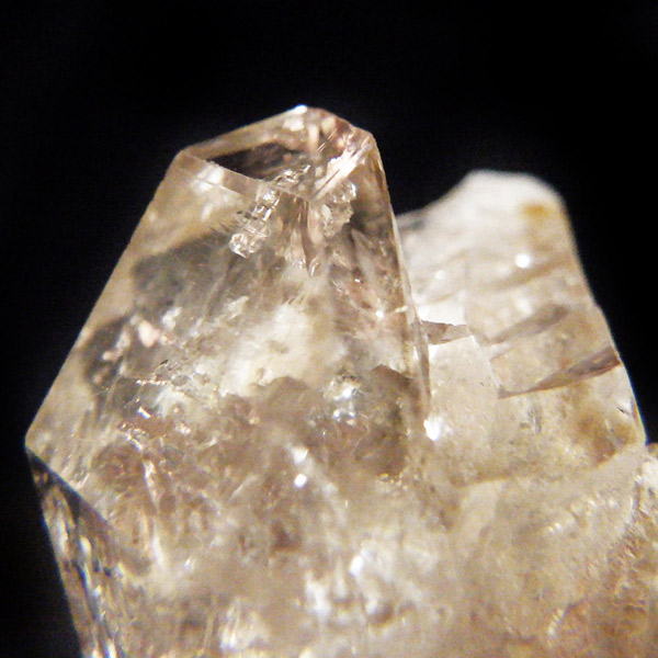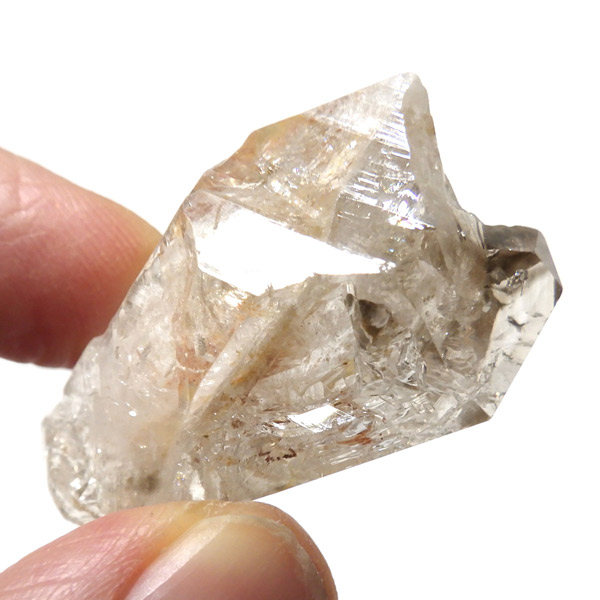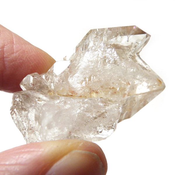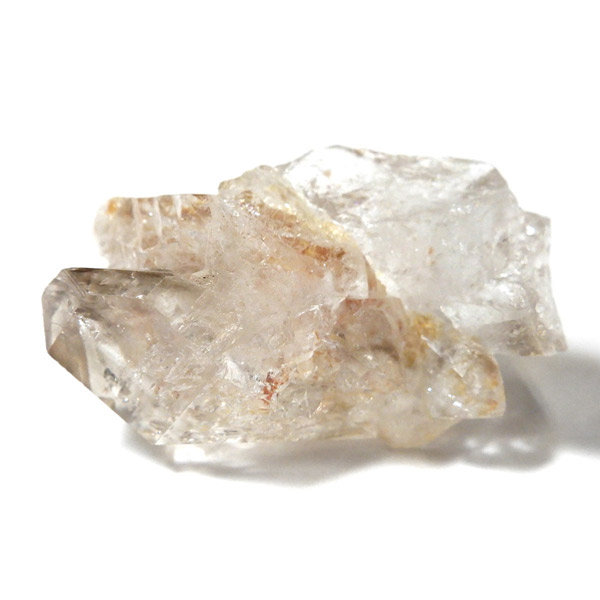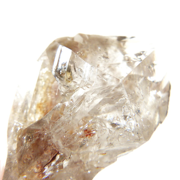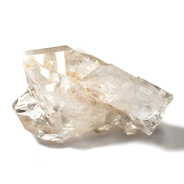 複数の結晶が結合して形成されるため、表面がゴツゴツとし、通常の水晶ポイントのようなはっきりした形にはなりません。このような外見から、骸骨水晶とも呼ばれており、表面がまるで鰐の鱗のように見えるものもあります。通常のイメージとはかけ離れた独特の形をした水晶です。表面には照りがあり、複雑な結晶をしておりますが透明度は高いです。