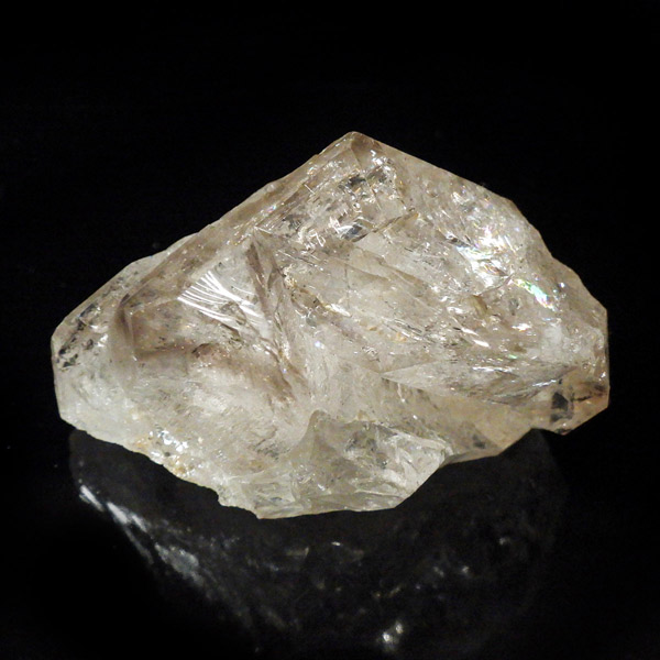 複数の結晶が結合して形成されるため、表面がゴツゴツとし、通常の水晶ポイントのようなはっきりした形にはなりません。このような外見から、骸骨水晶とも呼ばれており、表面がまるで鰐の鱗のように見えるものもあります。通常のイメージとはかけ離れた独特の形をした水晶です。表面には照りがあり、複雑な結晶をしておりますが透明度は高いです。