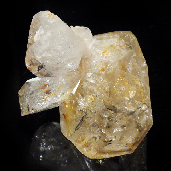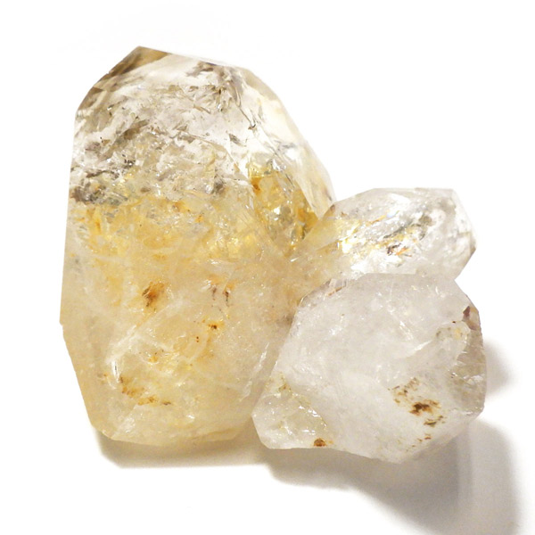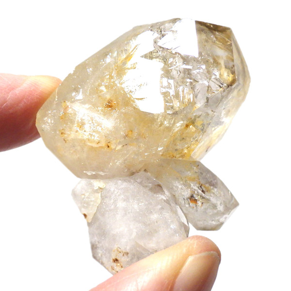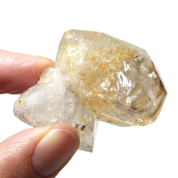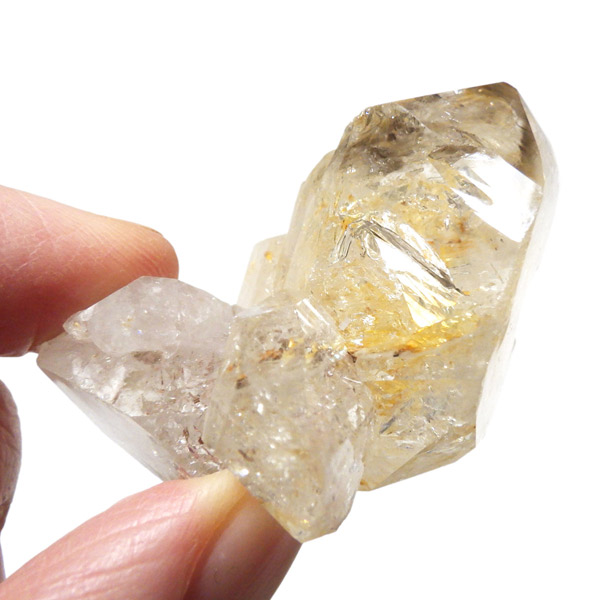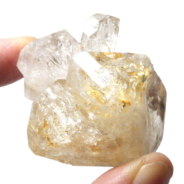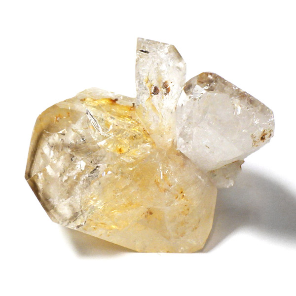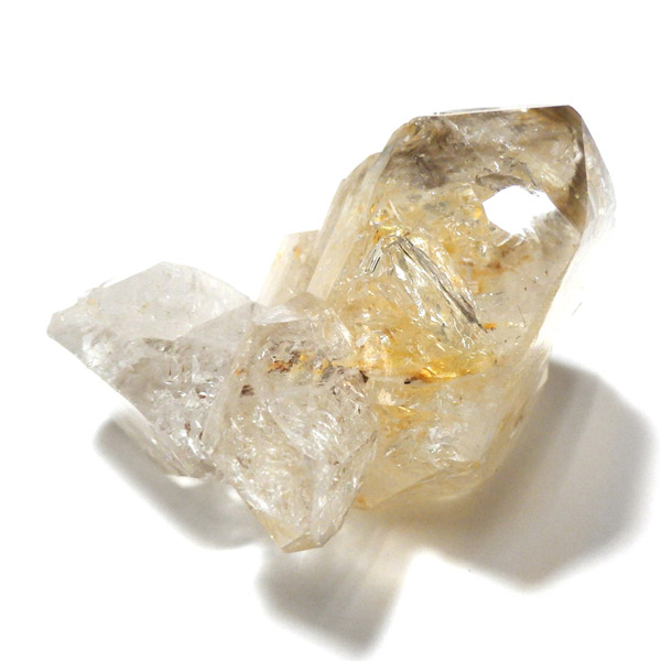 複数の結晶が結合して形成されるため、表面がゴツゴツとし、通常の水晶ポイントのようなはっきりした形にはなりません。このような外見から、骸骨水晶とも呼ばれており、表面がまるで鰐の鱗のように見えるものもあります。通常のイメージとはかけ離れた独特の形をした水晶です。表面には照りがあり、複雑な結晶をしておりますが透明度は高いです。