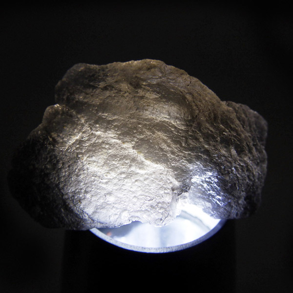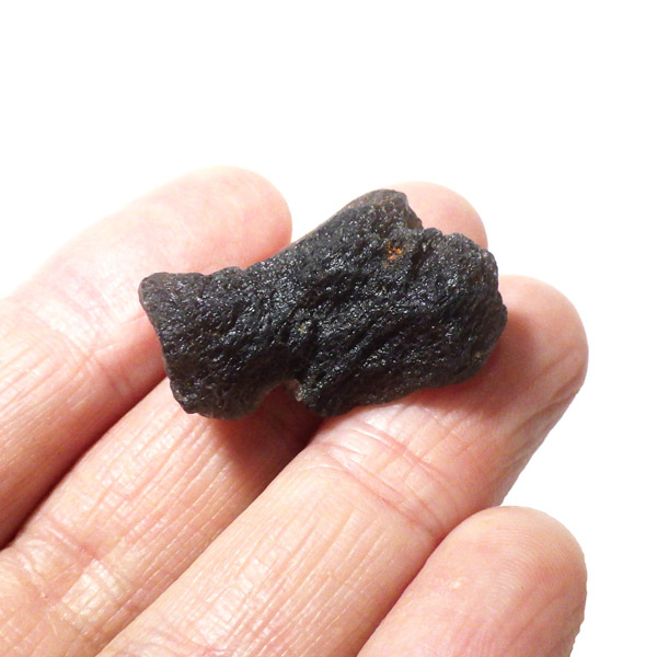 インドネシア・ジャワ島で採掘される希少な天然ガラスであるアグニマニタイトの原石です。アグニマニタイトの石の名前は、サンスクリット語で「火の神」を意味するアグニと「宝石」を意味するマニに由来し、「火の宝石」として知られています。表面はマットな黒~グレーの質感で、ごつごつとした天然のテクスチャが魅力的。光に透かすと、ほんのりスモーキーで神秘的な雰囲気を放ちます。フォルムや質感が面白い原石です。鉱物コレクションやお守り、アクセサリー制作にもおすすめです。