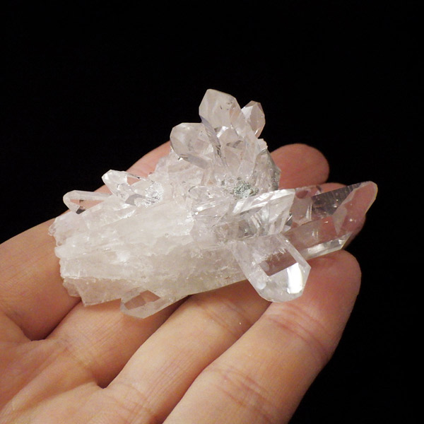 光を受けると結晶表面がキラキラと反射し、背景がクッキリと透けるほどの透明感は圧巻。 ピュアなエネルギーに満ちたクラスターは、癒しや浄化のお守りとしてもおすすめです。