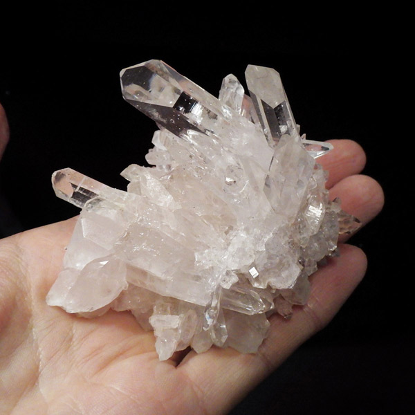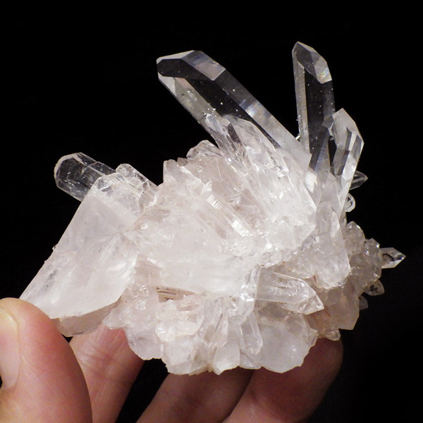 光を受けると結晶表面がキラキラと反射し、背景がクッキリと透けるほどの透明感は圧巻。 ピュアなエネルギーに満ちたクラスターは、癒しや浄化のお守りとしてもおすすめです。