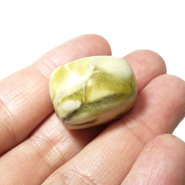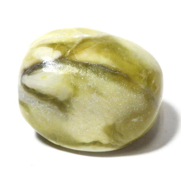 スコットランド産、アイオナマーブルのタンブルです。アイオナマーブルは、スコットランドのアイオナ島で産出する大理石です。蛇紋岩と石灰岩の独特な組み合わせで構成されています。現在は採石されておらず、大規模な流通はしておりません。アイオナ島の漁師たちは、聖なる石として石を持たずに港を出ることはなかったといわれています。イエローグリーンとホワイトの組み合わせが可愛らしく、柔らかな色味でとても癒されます。