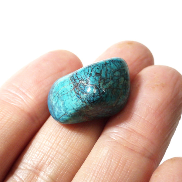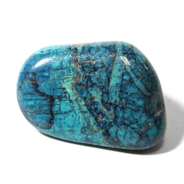 クリソコラは珪酸塩鉱物に分類されることから、和名で「珪孔雀石(けいくじゃくせき)」と呼ばれています。主に銅を含む鉱床の二次酸化帯で形成され、マラカイト(孔雀石)やアズライト(藍銅鉱)、クォーツ(石英)などと共生することが多い鉱物です。ペルー産のクリソコラは、明るく鮮やかなグリーンブルー?ターコイズブルーが特徴で、銅鉱床の豊富な地域ならではの発色を見せます。その美しい色合いから、古代エジプトやアステカでも装飾品や護符として愛用されてきたと伝えられています。