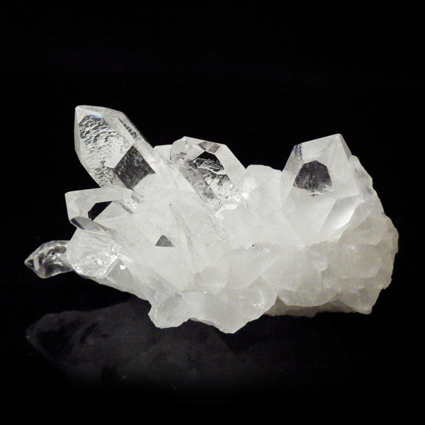 ブラジル トマスゴンサガ産 の水晶クラスターです。トマスゴンサガ産の水晶の特徴は、照りと艶。 光沢が強いため、驚くほどキラキラとしています。 また、水晶柱が放射線状に伸びて立体的な構造を作っているものが多く、「これぞ、水晶クラスター」という形状をしています。 非常に透明度の高い大小様々な結晶が複雑に絡み合い、見る角度によって様々な表情を見せる大変美しいクラスターです。
