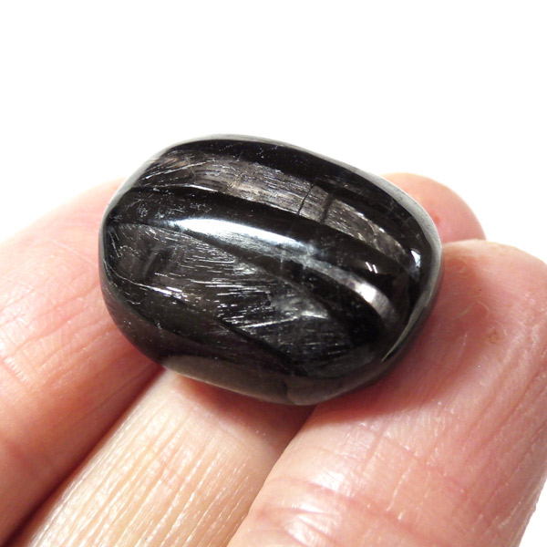 カナダ産のハイパーシーン、タンブルです。和名は紫蘇輝石。ハイパーシーンは、シックでメタリックな光沢と落ち着いた黒褐色が特徴の美しい天然石です。光の角度によって美しい輝きを放つシラー効果が魅力的な一品です。厳選された高品質な個体で、上品な光の表情をお楽しみいただけます。