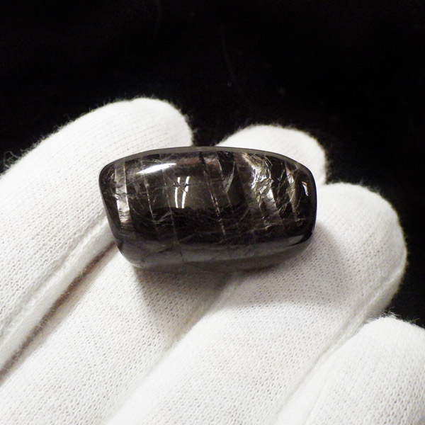 カナダ産のハイパーシーン、タンブルです。和名は紫蘇輝石。ハイパーシーンは、シックでメタリックな光沢と落ち着いた黒褐色が特徴の美しい天然石です。光の角度によって美しい輝きを放つシラー効果が魅力的な一品です。厳選された高品質な個体で、上品な光の表情をお楽しみいただけます。