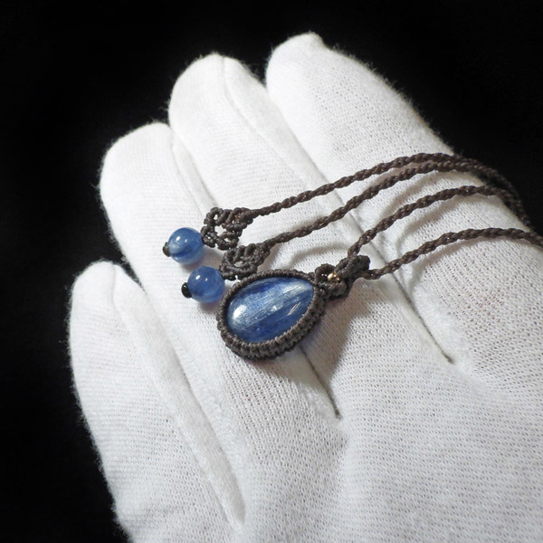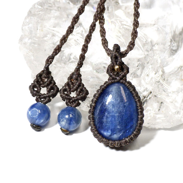 ブラジル産カイヤナイトを使用したマクラメペンダントです。