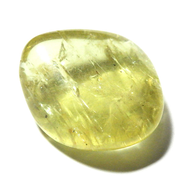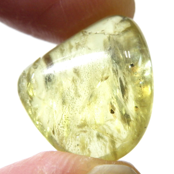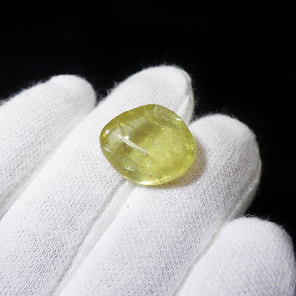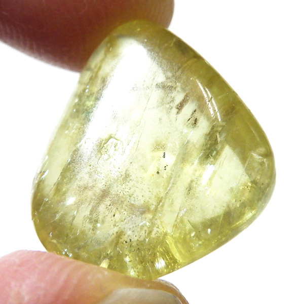 メキシコ産のイエローアパタイトタンブルです。多く流通しているイエローアパタイトは、小指に乗るくらいの小さな原石ですが、このタンブルはその大きさをはるかに上回る大きさです。 タンブルに加工できるほどのサイズは大変貴重です。また、加工すれば宝石になるようなきれいなタンブルです。結晶は透明でしっかりとしたイエローカラー、角度によってキラりと輝きます。とても高品質で貴重な一点です。