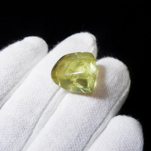 メキシコ産のイエローアパタイトタンブルです。多く流通しているイエローアパタイトは、小指に乗るくらいの小さな原石ですが、このタンブルはその大きさをはるかに上回る大きさです。 タンブルに加工できるほどのサイズは大変貴重です。また、加工すれば宝石になるようなきれいなタンブルです。結晶は透明でしっかりとしたイエローカラー、角度によってキラりと輝きます。とても高品質で貴重な一点です。