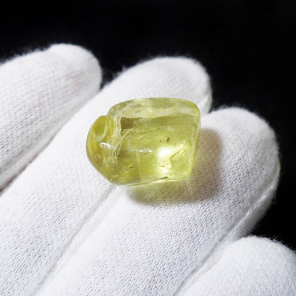 メキシコ産のイエローアパタイトタンブルです。多く流通しているイエローアパタイトは、小指に乗るくらいの小さな原石ですが、このタンブルはその大きさをはるかに上回る大きさです。 タンブルに加工できるほどのサイズは大変貴重です。また、加工すれば宝石になるようなきれいなタンブルです。結晶は透明でしっかりとしたイエローカラー、角度によってキラりと輝きます。とても高品質で貴重な一点です。
