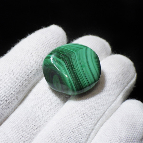 深いグリーンの色合いと、美しく流れるような縞模様が魅力の天然石。