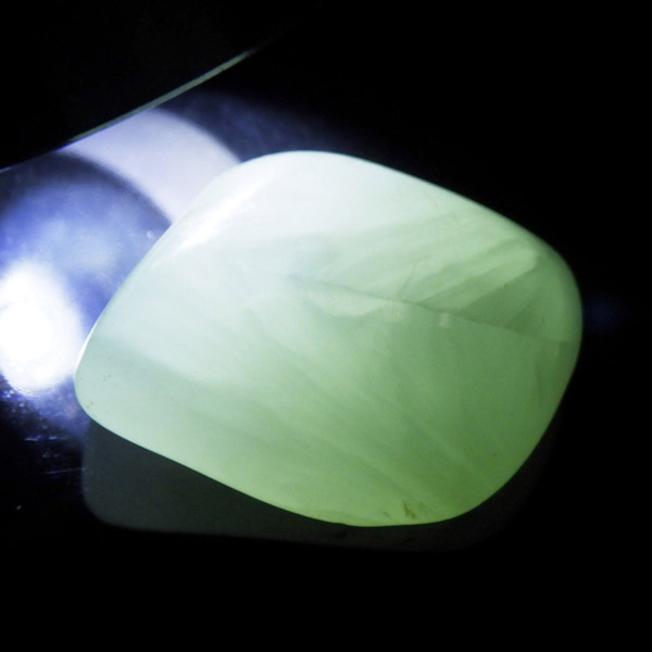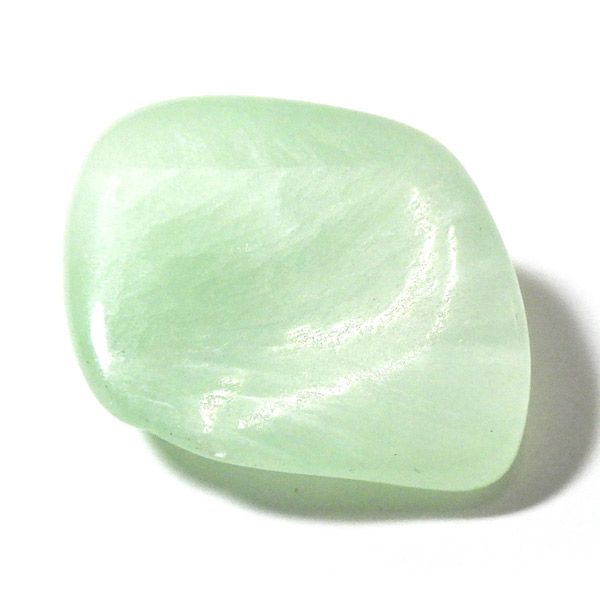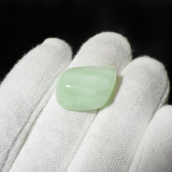 ナミビア産のアップルグリーンプレナイト、タンブルです。プレナイトは、淡い青緑から黄色にかけての色合いの石。1788年に南アフリカで初めてこの石を発見したフォン・プレーン大佐にちなんで名付けられました。葡萄石という和名は産出時に見た目が葡萄のようであったことから名づけられました。今回は黄色味がかったものではなく、発色の良いアップルグリーンのプレナイトをご用意いたしました。綺麗な色合いで心が落ち着きます。