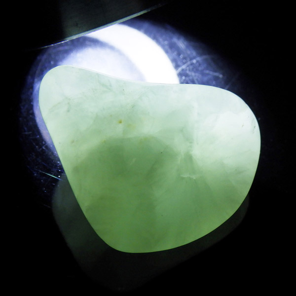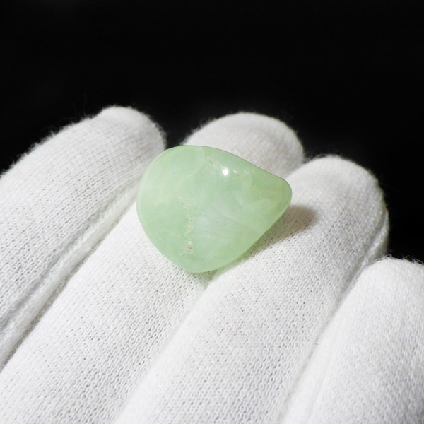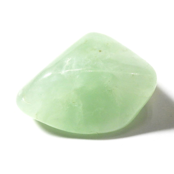 ナミビア産のアップルグリーンプレナイト、タンブルです。プレナイトは、淡い青緑から黄色にかけての色合いの石。1788年に南アフリカで初めてこの石を発見したフォン・プレーン大佐にちなんで名付けられました。葡萄石という和名は産出時に見た目が葡萄のようであったことから名づけられました。今回は黄色味がかったものではなく、発色の良いアップルグリーンのプレナイトをご用意いたしました。綺麗な色合いで心が落ち着きます。
