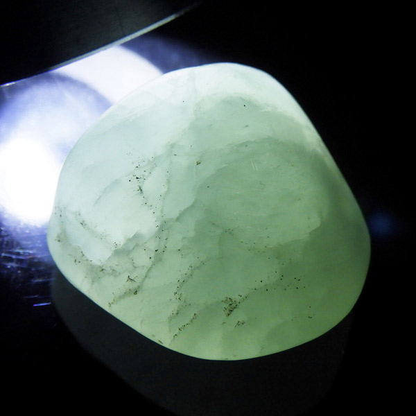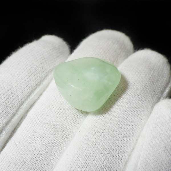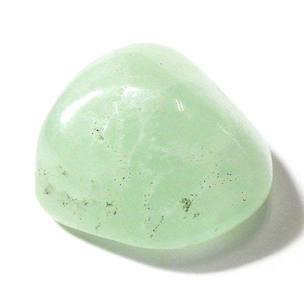 ナミビア産のアップルグリーンプレナイト、タンブルです。プレナイトは、淡い青緑から黄色にかけての色合いの石。1788年に南アフリカで初めてこの石を発見したフォン・プレーン大佐にちなんで名付けられました。葡萄石という和名は産出時に見た目が葡萄のようであったことから名づけられました。今回は黄色味がかったものではなく、発色の良いアップルグリーンのプレナイトをご用意いたしました。綺麗な色合いで心が落ち着きます。
