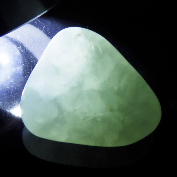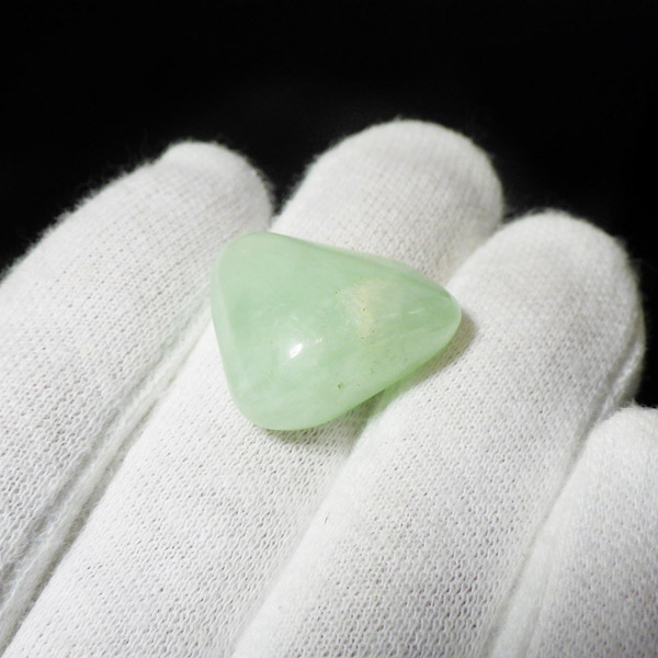 ナミビア産のアップルグリーンプレナイト、タンブルです。プレナイトは、淡い青緑から黄色にかけての色合いの石。1788年に南アフリカで初めてこの石を発見したフォン・プレーン大佐にちなんで名付けられました。葡萄石という和名は産出時に見た目が葡萄のようであったことから名づけられました。今回は黄色味がかったものではなく、発色の良いアップルグリーンのプレナイトをご用意いたしました。綺麗な色合いで心が落ち着きます。