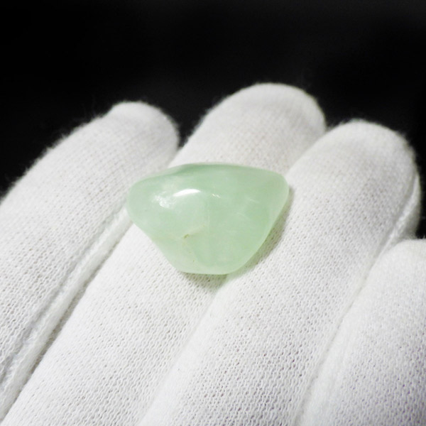 ナミビア産のアップルグリーンプレナイト、タンブルです。プレナイトは、淡い青緑から黄色にかけての色合いの石。1788年に南アフリカで初めてこの石を発見したフォン・プレーン大佐にちなんで名付けられました。葡萄石という和名は産出時に見た目が葡萄のようであったことから名づけられました。今回は黄色味がかったものではなく、発色の良いアップルグリーンのプレナイトをご用意いたしました。綺麗な色合いで心が落ち着きます。