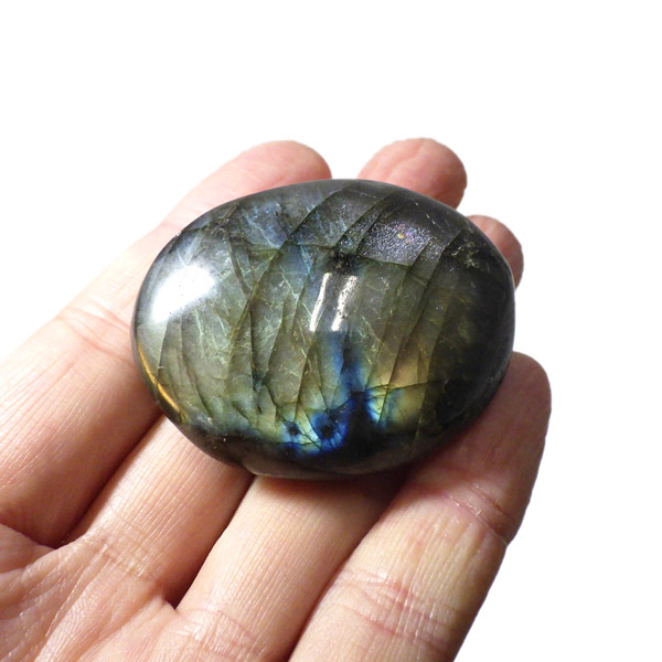 見る角度によってオーロラのような色彩を変える美しい光を持つのが特徴です。 石自体はグレーなどの地味めな色合いをしていますが、そこに鮮やかな輝きが浮かび上がるところから「アゲハ蝶の羽」に例えられる事もある美しい石です。 ラブラドライトは、月・太陽を象徴するといわれています。根気強い実行力を養い、信念を貫けるよう導く力があるとされます。そして、直感力・洞察力・創造性を高めてくれるでしょう。自信を失いかけた時に、生まれた意味・生きる意味を気づかせるサポートをしてくれ、生きる力を引き出してくれるといわれています。