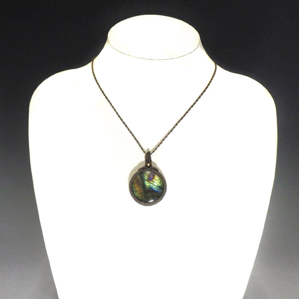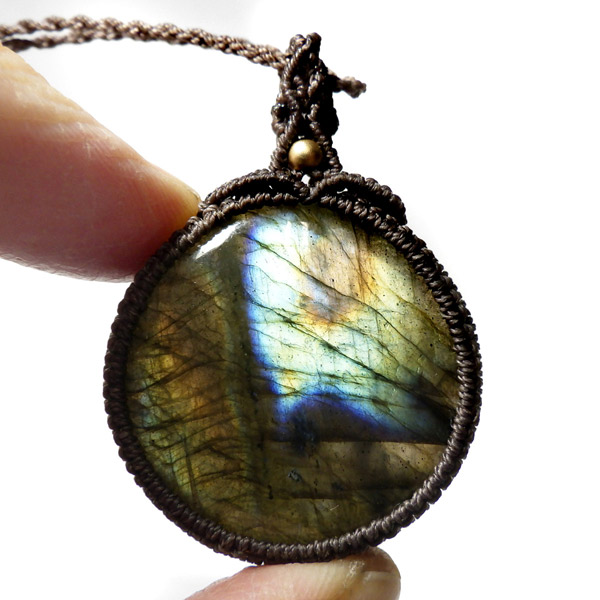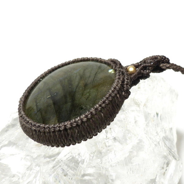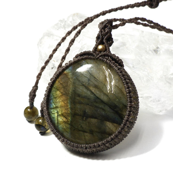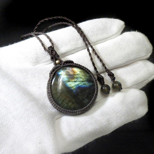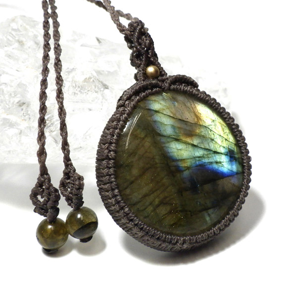 マダガスカル産のラブラドライトを使用したマクラメペンダントです。