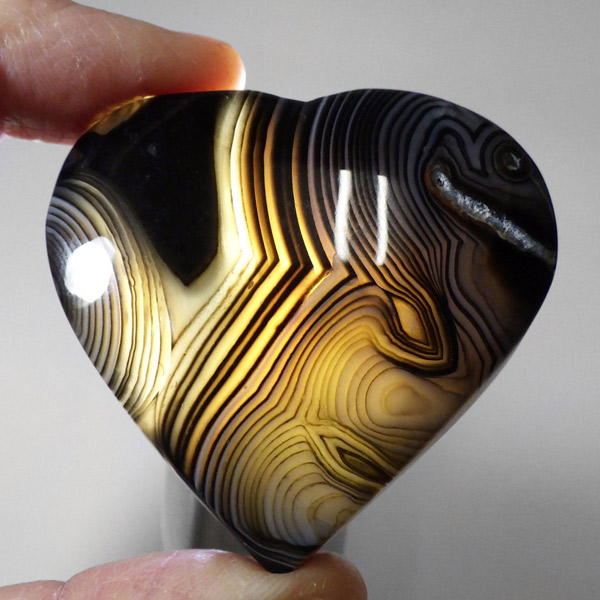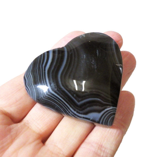 チャイナ産のブラックアゲートを使用した、ハート形の置物です。ブラックアゲート、ブラックバンデッドアゲートなどと呼ばれています。